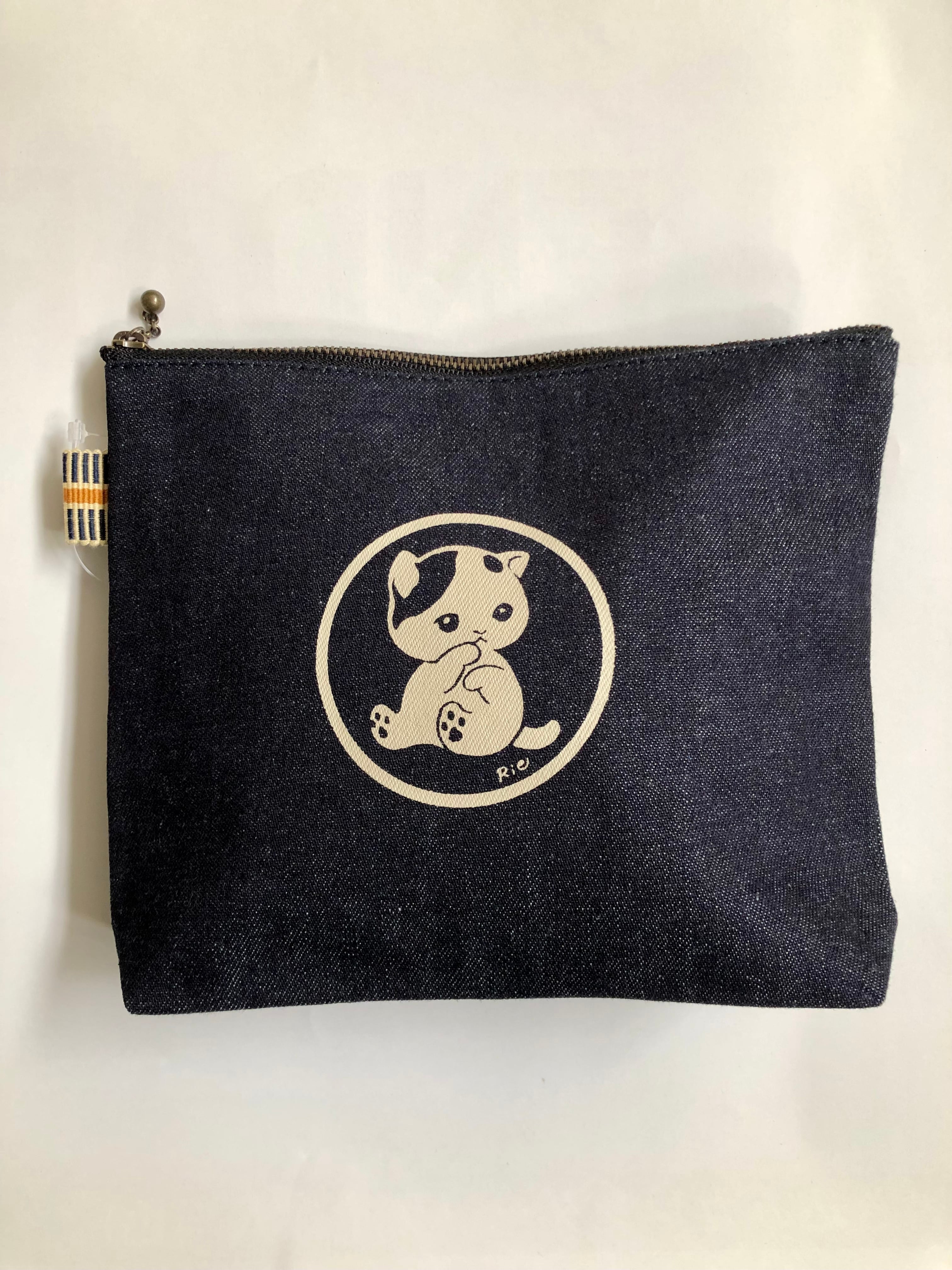 国産岡山倉敷デニム「にゃおとら」ポーチ(F)